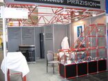 Syma-Orbit ermöglicht mit einem Minimum an Elementen den Bau von ästhetischen Raumstrukturen im Messebau. Die Stäbe haben einen Durchmesser von 30mm, die Kugeln einen Durchmesser von 48 mm. Wesentlicher Vorteil: Ohne einengende Stützen lassen sich große Spannweiten überbrücken. Wir können Ihnen das Orbit System in den Farbe, Alu-Natur, weiß oder rot anbieten